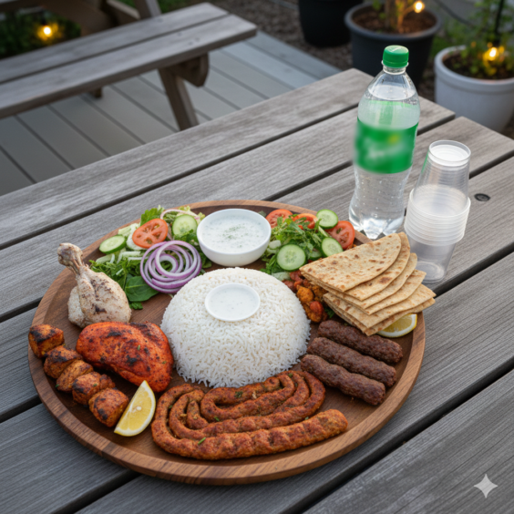 A complete family BBQ feast from Nawab Pakwan, loaded with premium grilled items, rice, drinks, and complimentary refills—perfect for gatherings and celebrations.